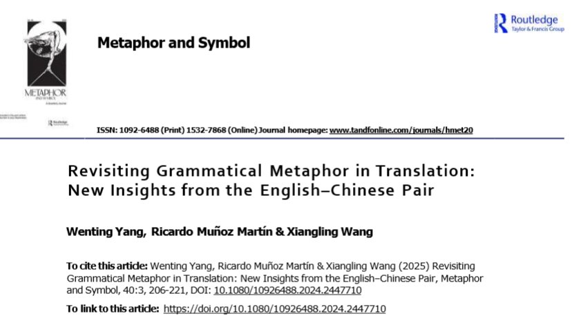 杨雯婷、王湘玲等Metaphor and Symbol上发文:Revisiting Gra...